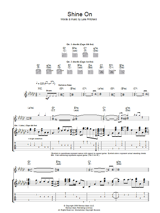 Download or print The Kooks Shine On sheet music, chords and digital score arranged for Guitar Chords/Lyrics. This Rock score includes 2 page(s).