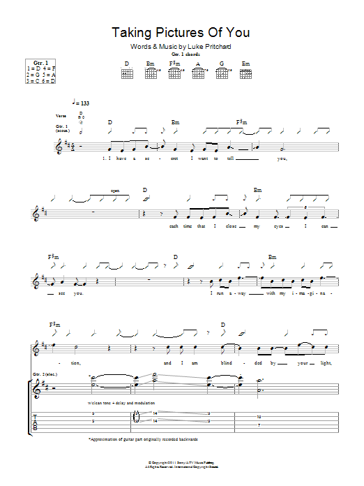 Download or print The Kooks Taking Pictures Of You sheet music, chords and digital score arranged for Guitar Tab. This Rock score includes 8 page(s).