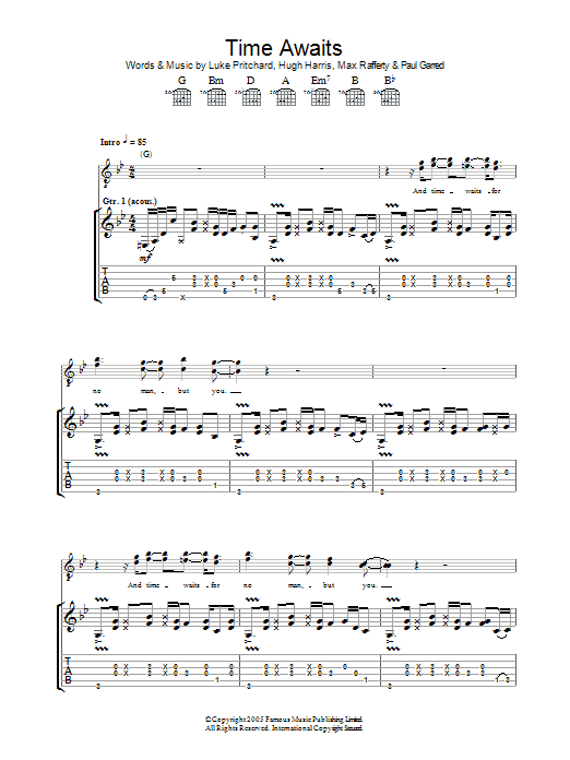 Download or print The Kooks Time Awaits sheet music, chords and digital score arranged for Guitar Tab. This Rock score includes 6 page(s).