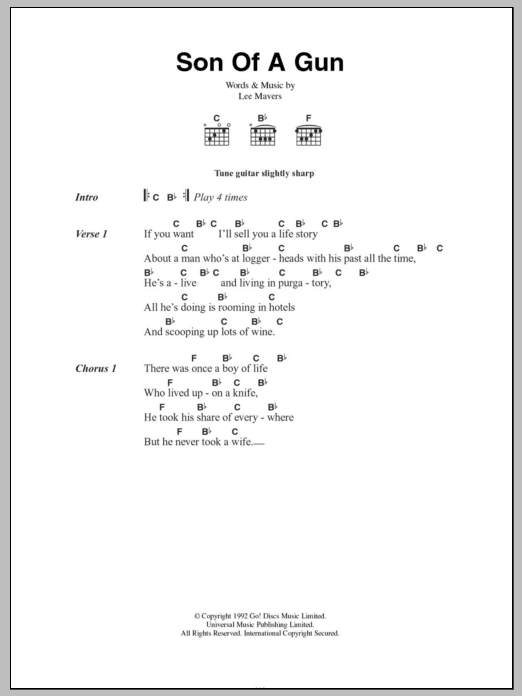 Download or print The La's Son Of A Gun sheet music, chords and digital score arranged for Guitar Chords/Lyrics. This Rock score includes 2 page(s).