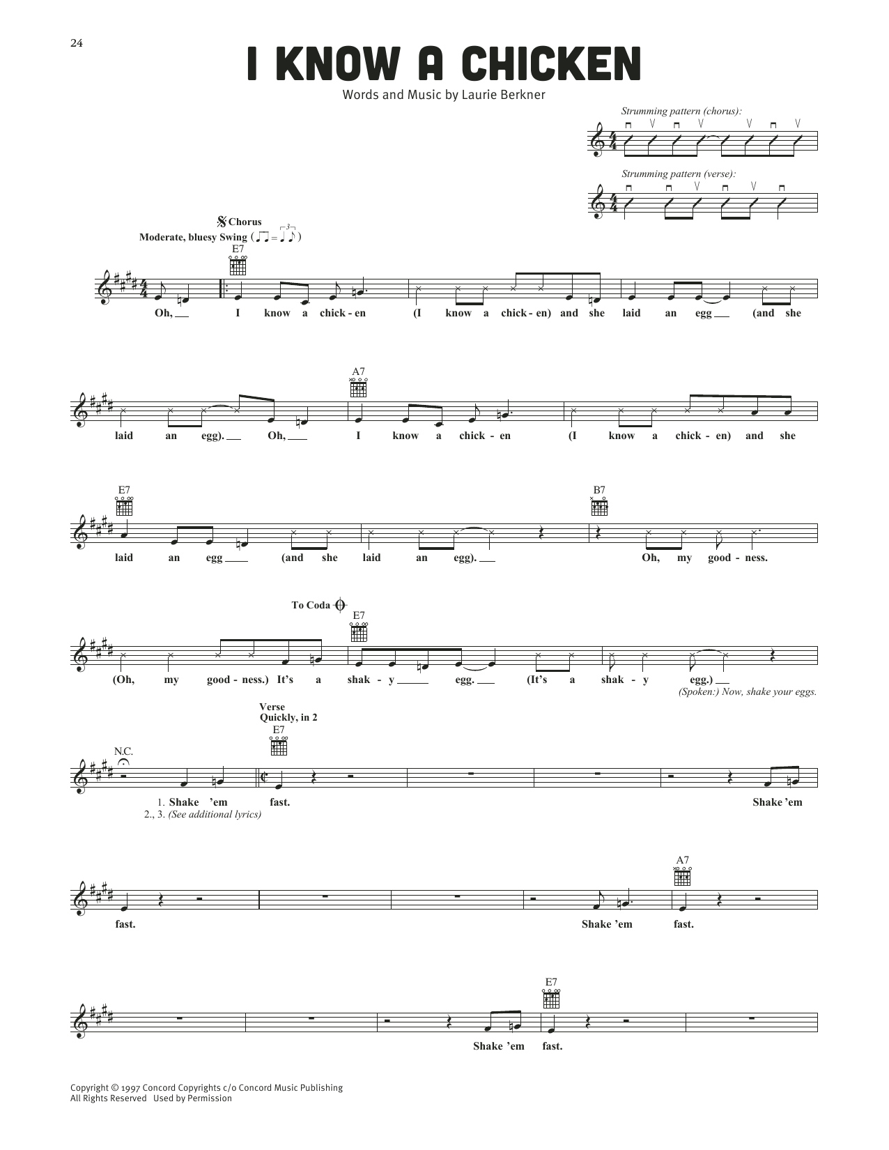 Download or print The Laurie Berkner Band I Know A Chicken sheet music, chords and digital score arranged for Lead Sheet / Fake Book. This Children score includes 2 page(s).