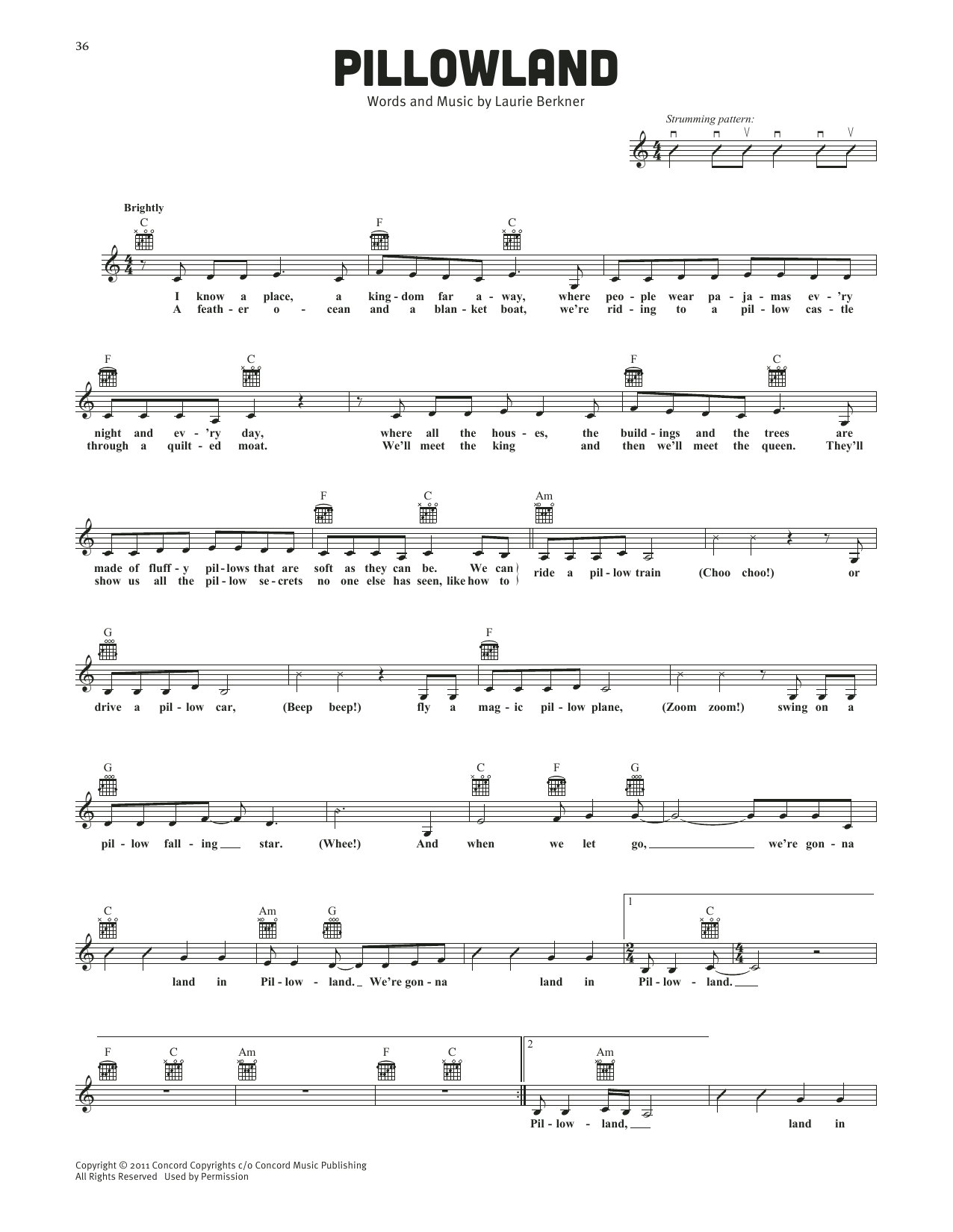 Download or print The Laurie Berkner Band Pillowland sheet music, chords and digital score arranged for Lead Sheet / Fake Book. This Children score includes 2 page(s).