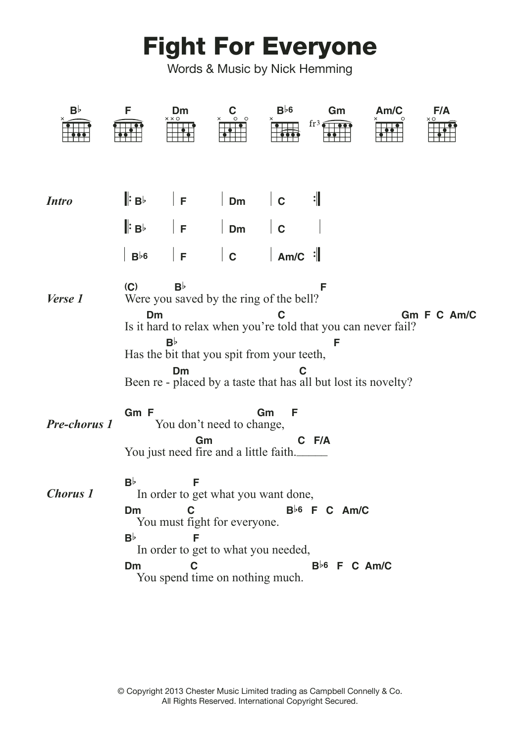Download or print The Leisure Society Fight For Everyone sheet music, chords and digital score arranged for Guitar Chords/Lyrics. This Pop score includes 2 page(s).