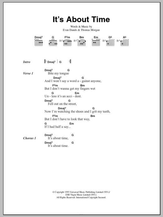 Download or print The Lemonheads It's About Time sheet music, chords and digital score arranged for Guitar Chords/Lyrics. This Rock score includes 3 page(s).