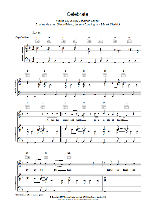 Download or print The Levellers Celebrate sheet music, chords and digital score arranged for Guitar Chords/Lyrics. This Rock score includes 2 page(s).