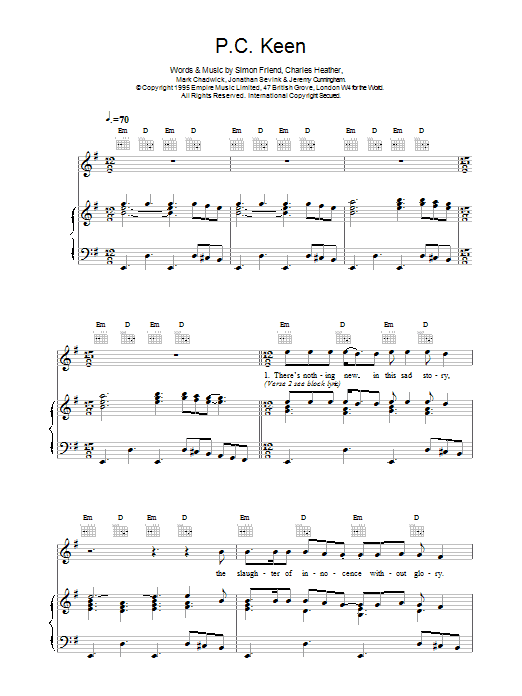 Download or print The Levellers P.C. Keen sheet music, chords and digital score arranged for Piano, Vocal & Guitar Chords. This Alternative score includes 5 page(s).