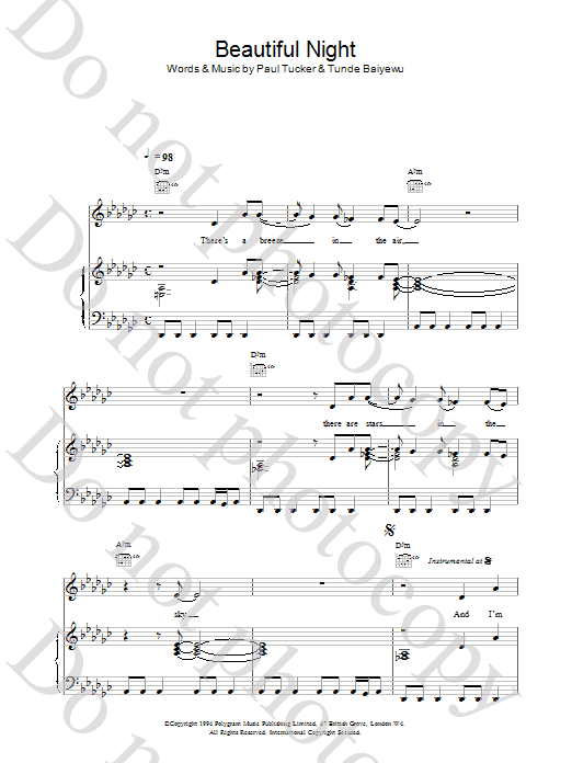 Download or print Lighthouse Family Beautiful Night sheet music, chords and digital score arranged for Piano, Vocal & Guitar Chords. This Pop score includes 4 page(s).
