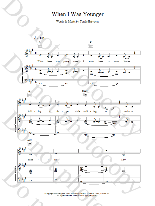 Quick facts When I Was Younger about digital sheet music