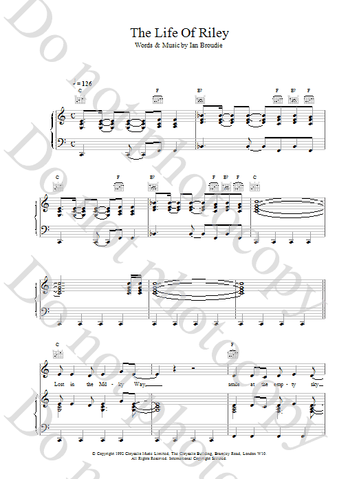 Download or print The Lightning Seeds The Life Of Riley sheet music, chords and digital score arranged for Guitar Chords/Lyrics. This Rock score includes 3 page(s).