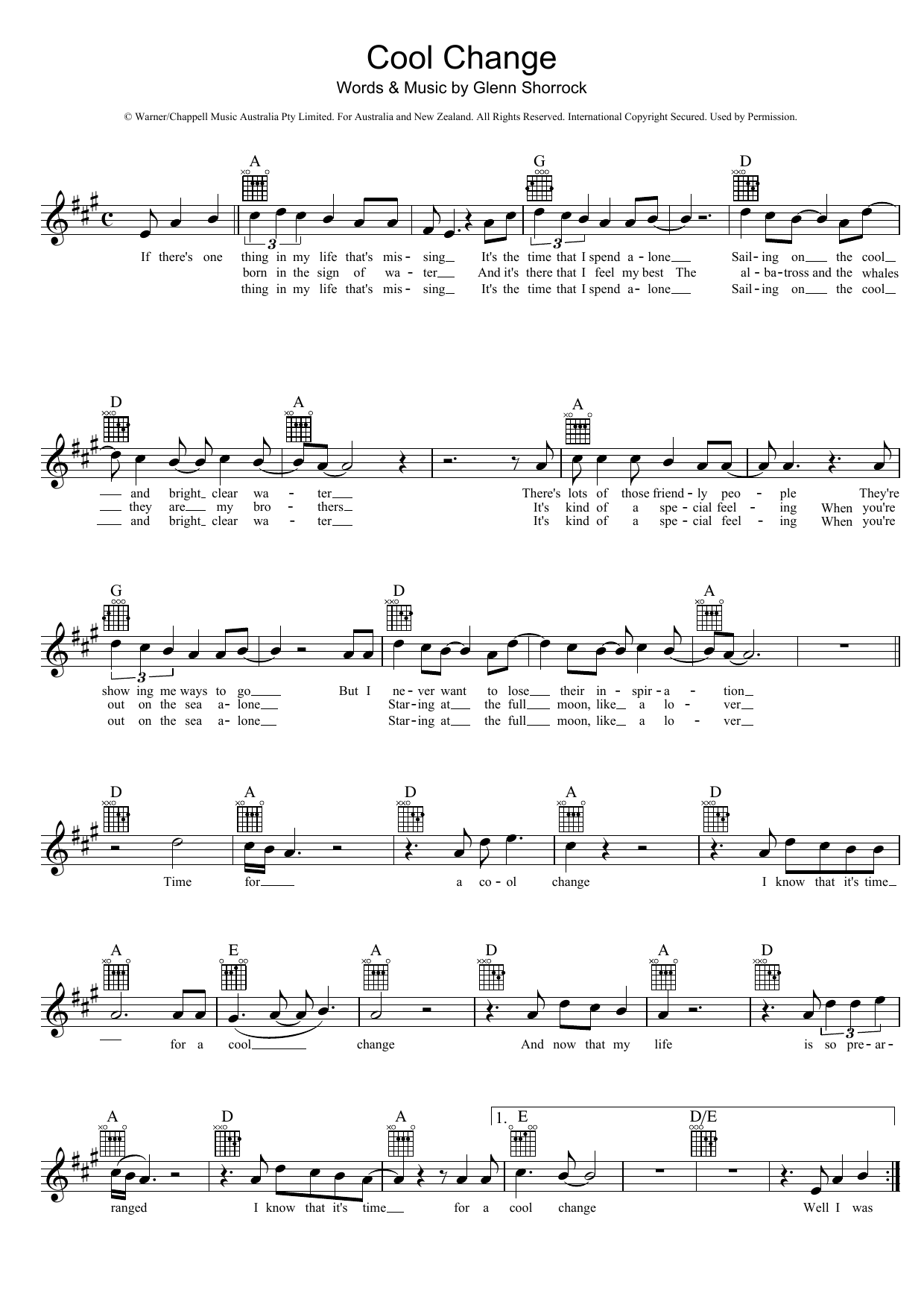 Download or print The Little River Band Cool Change sheet music, chords and digital score arranged for Lead Sheet / Fake Book. This Rock score includes 2 page(s).