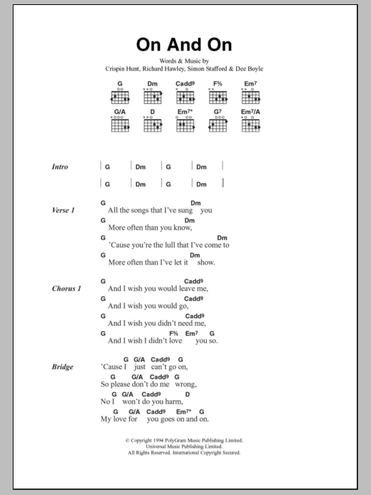 Download or print The Longpigs On And On sheet music, chords and digital score arranged for Guitar Chords/Lyrics. This Rock score includes 2 page(s).
