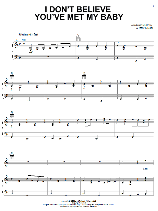 Download or print The Louvin Brothers I Don't Believe You've Met My Baby sheet music, chords and digital score arranged for Piano, Vocal & Guitar Chords (Right-Hand Melody). This Country score includes 5 page(s).