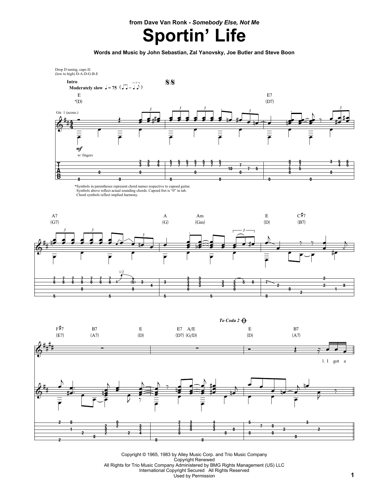 Download or print Lovin' Spoonful Sportin' Life sheet music, chords and digital score arranged for Guitar Tab. This Pop score includes 4 page(s).