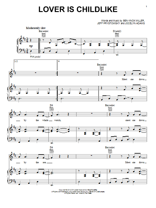 Download or print The Low Anthem Lover Is Childlike sheet music, chords and digital score arranged for Piano, Vocal & Guitar Chords (Right-Hand Melody). This Alternative score includes 7 page(s).