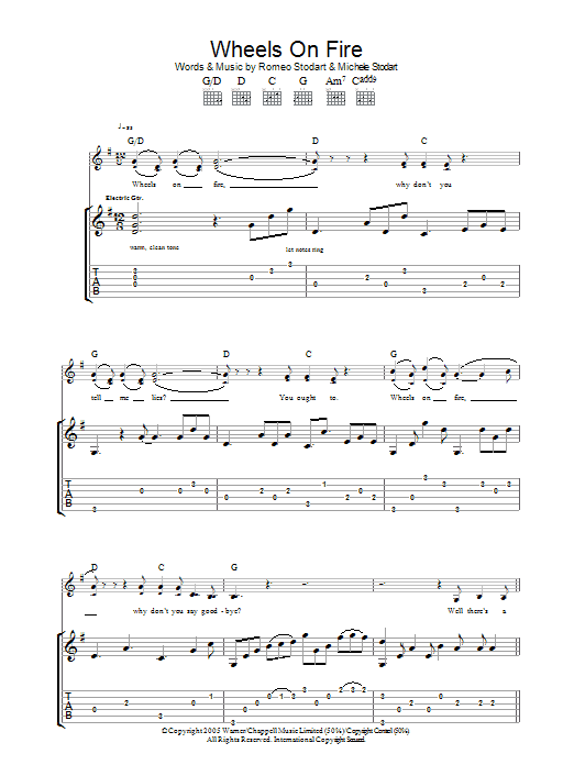 Download or print The Magic Numbers Wheels On Fire sheet music, chords and digital score arranged for Guitar Tab. This Pop score includes 4 page(s).