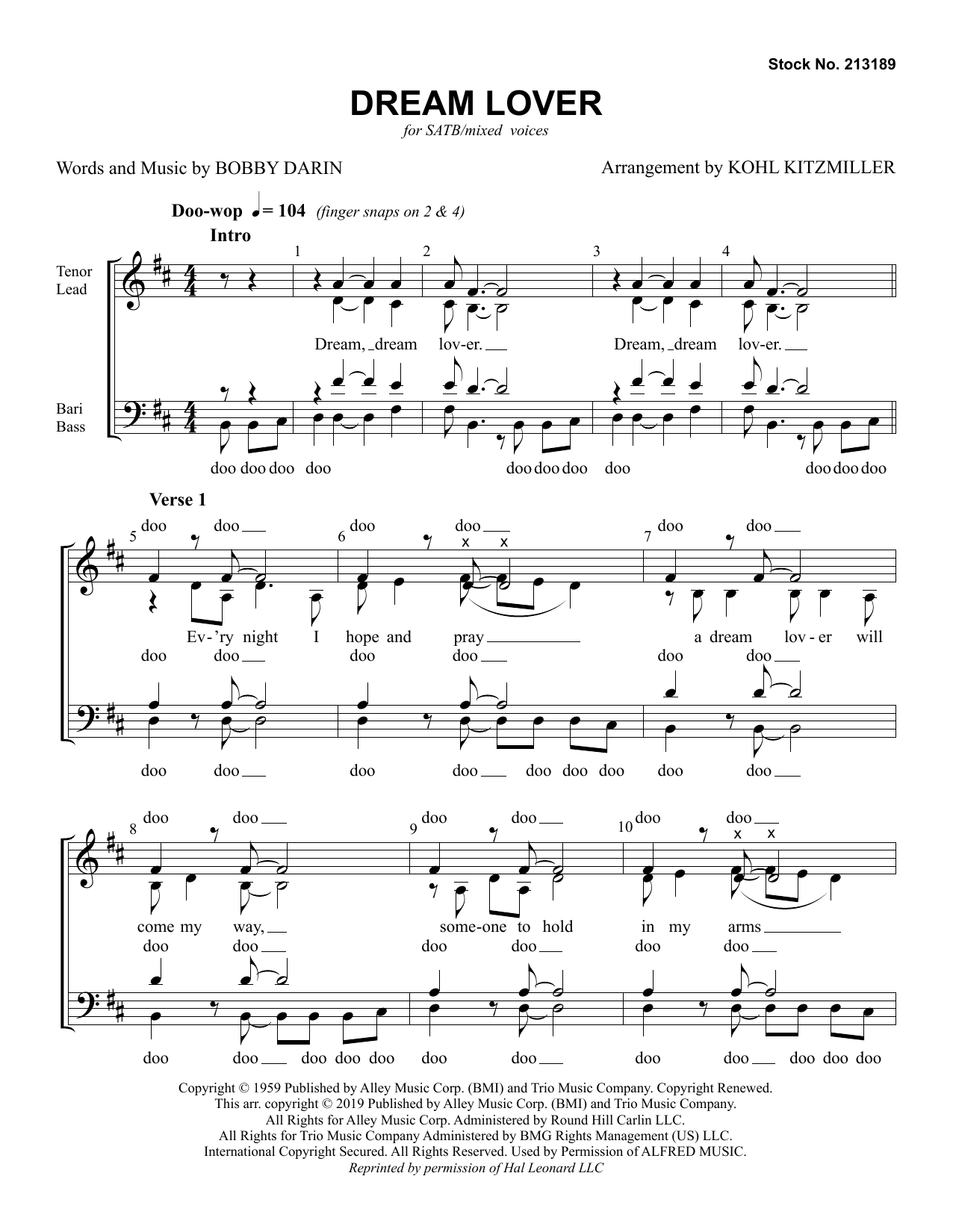 Quick facts Dream Lover (arr. Kohl Kitzmiller) about digital sheet music
