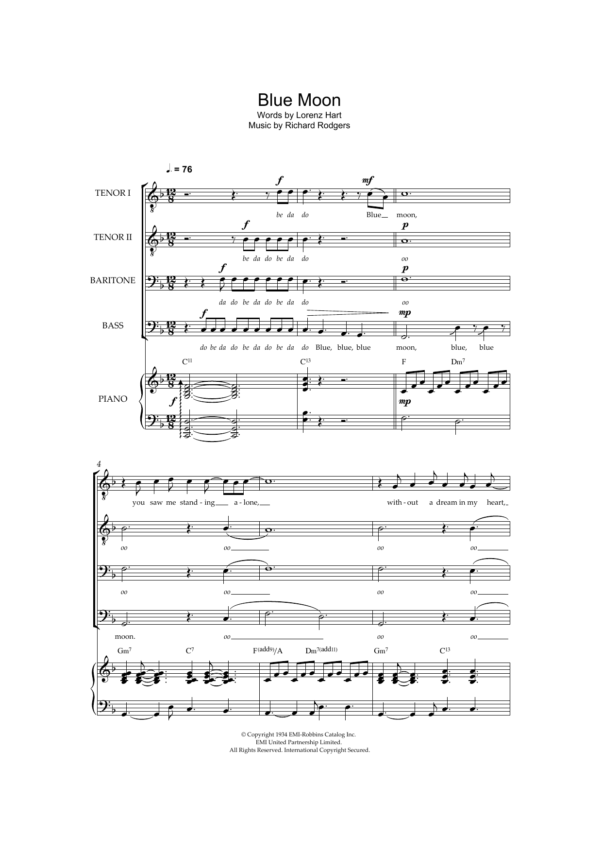 Download or print The Marcels Blue Moon sheet music, chords and digital score arranged for SSA Choir. This Rock score includes 10 page(s).