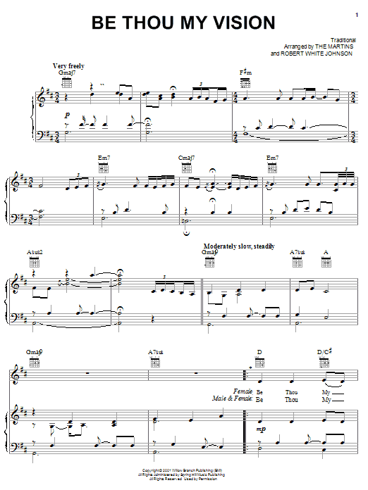 Download or print The Martins Be Thou My Vision sheet music, chords and digital score arranged for Piano, Vocal & Guitar Chords (Right-Hand Melody). This Christian score includes 5 page(s).