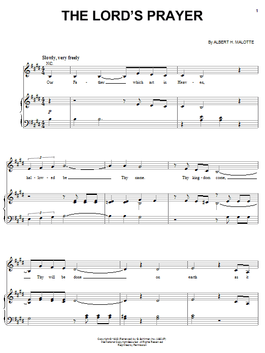Download or print The Martins The Lord's Prayer sheet music, chords and digital score arranged for Piano, Vocal & Guitar Chords (Right-Hand Melody). This Christmas score includes 5 page(s).