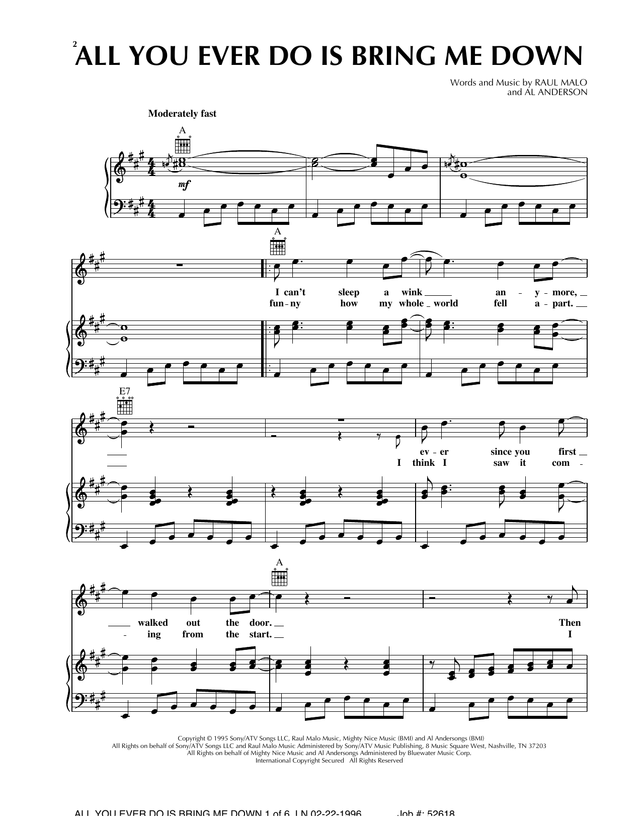 Download or print The Mavericks All You Ever Do Is Bring Me Down (feat. Flaco Jimenez) sheet music, chords and digital score arranged for Piano, Vocal & Guitar Chords (Right-Hand Melody). This Country score includes 6 page(s).