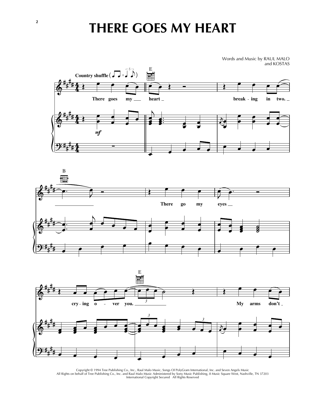 Download or print The Mavericks There Goes My Heart sheet music, chords and digital score arranged for Piano, Vocal & Guitar Chords (Right-Hand Melody). This Country score includes 6 page(s).
