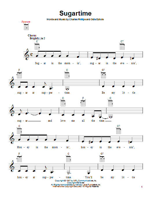 Download or print The McGuire Sisters Sugartime sheet music, chords and digital score arranged for Easy Lead Sheet / Fake Book. This Oldies score includes 2 page(s).