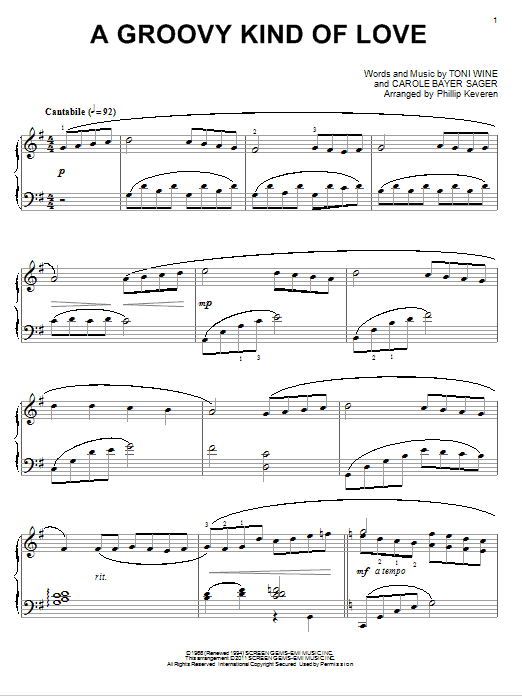 Quick facts A Groovy Kind Of Love (arr. Phillip Keveren) about digital sheet music