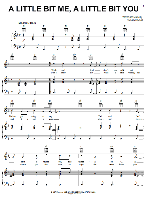 Download or print The Monkees A Little Bit Me, A Little Bit You sheet music, chords and digital score arranged for Guitar Chords/Lyrics. This Pop score includes 3 page(s).