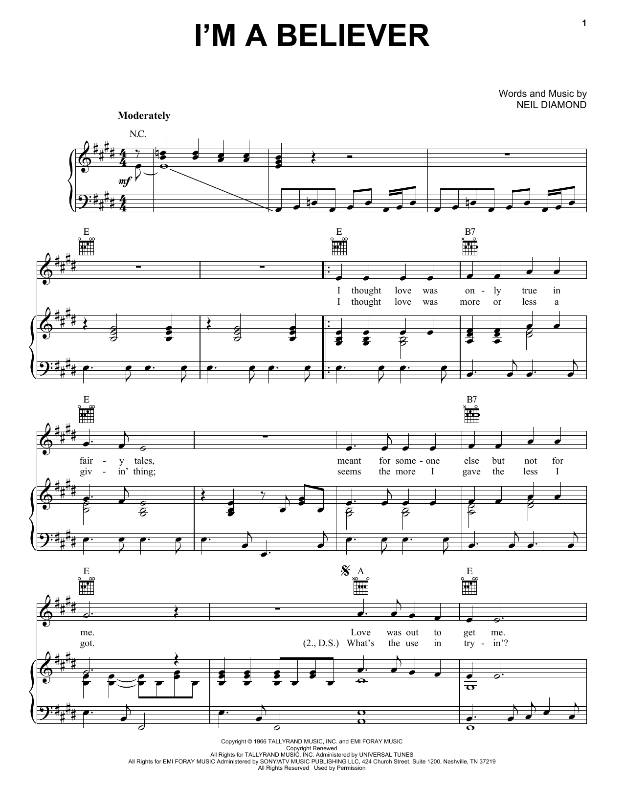 Quick facts I'm A Believer about digital sheet music