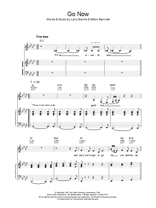 Download or print The Moody Blues Go Now sheet music, chords and digital score arranged for Guitar Chords/Lyrics. This Pop score includes 2 page(s).