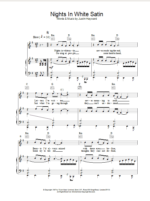 Quick facts Nights In White Satin about digital sheet music