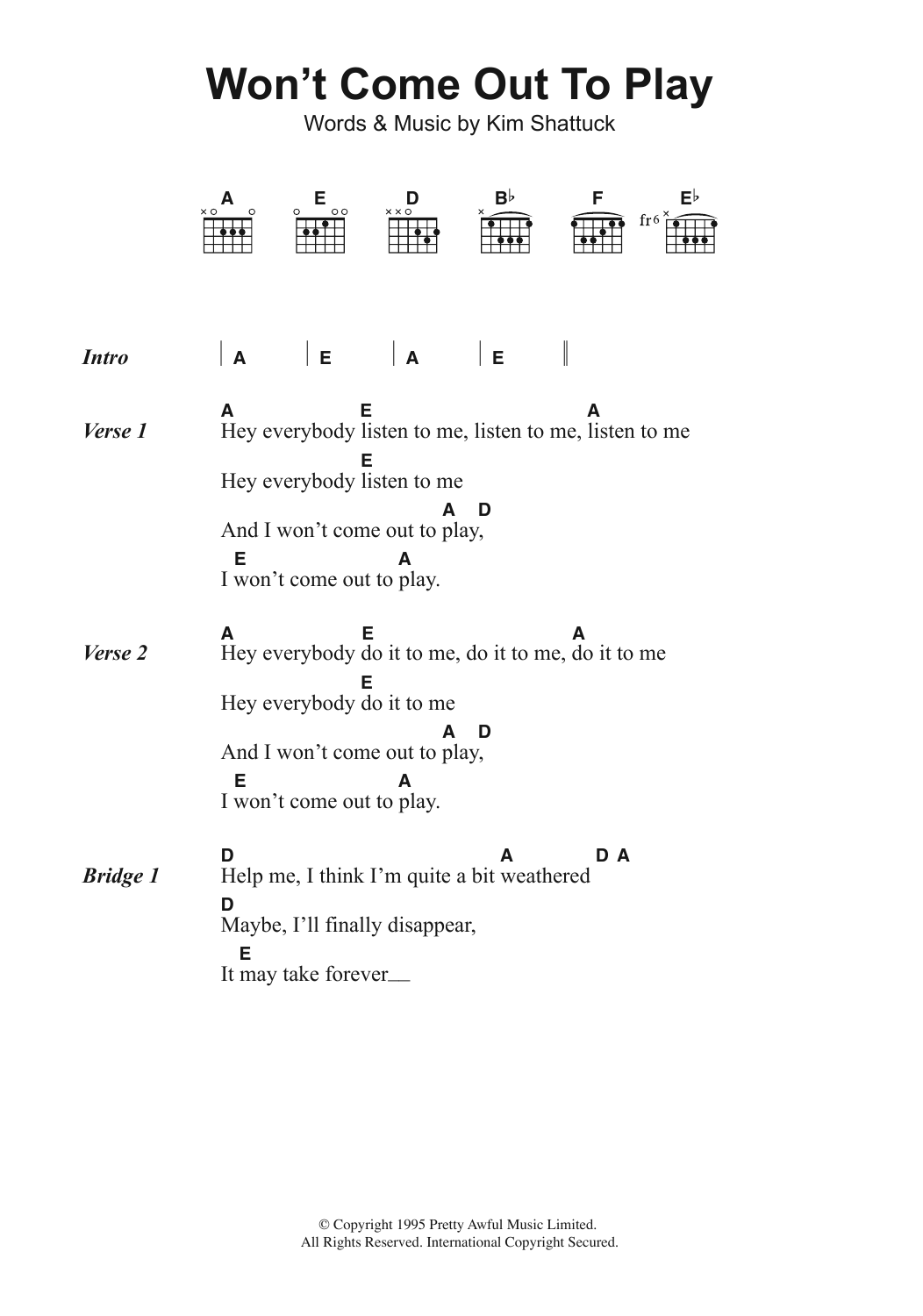 Download or print The Muffs Won't Come Out To Play sheet music, chords and digital score arranged for Guitar Chords/Lyrics. This Pop score includes 2 page(s).