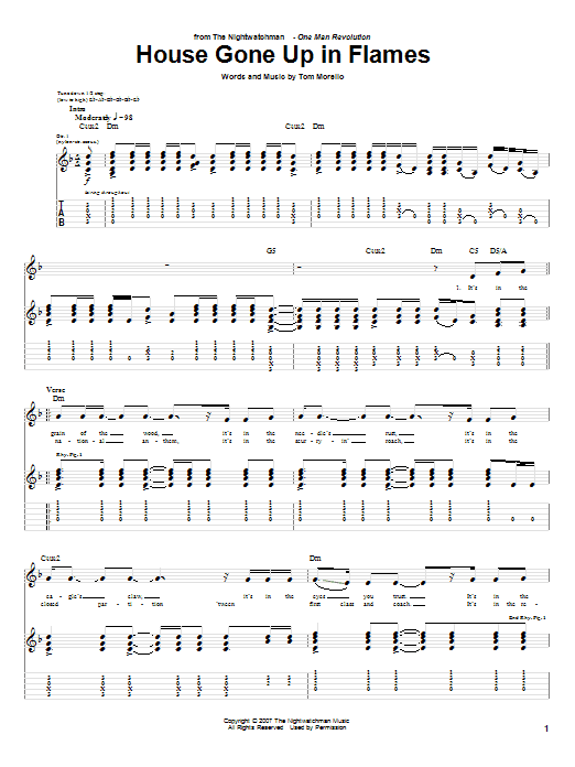 Download or print The Nightwatchman House Gone Up In Flames sheet music, chords and digital score arranged for Guitar Tab. This Folk score includes 5 page(s).