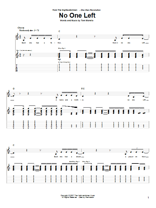 Download or print The Nightwatchman No One Left sheet music, chords and digital score arranged for Guitar Tab. This Folk score includes 5 page(s).