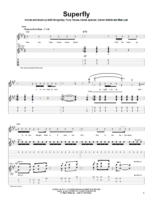Download or print The O.C. Supertones Superfly sheet music, chords and digital score arranged for Guitar Tab. This Christian score includes 10 page(s).