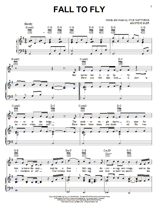 Download or print Oak Ridge Boys Fall To Fly sheet music, chords and digital score arranged for Piano, Vocal & Guitar Chords (Right-Hand Melody). This Country score includes 5 page(s).