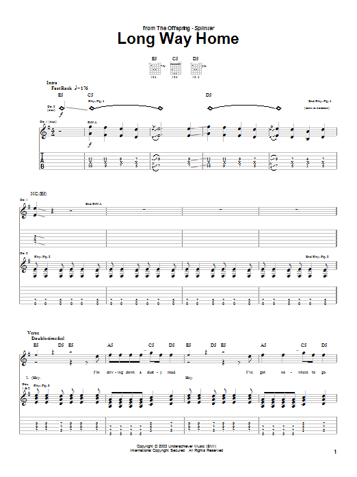 Download or print The Offspring Long Way Home sheet music, chords and digital score arranged for Guitar Tab. This Metal score includes 5 page(s).