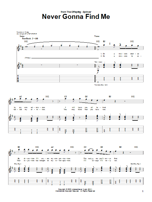 Download or print The Offspring Never Gonna Find Me sheet music, chords and digital score arranged for Guitar Tab. This Metal score includes 5 page(s).