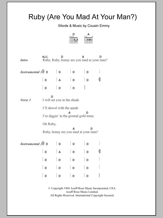 Download or print The Osborne Brothers Ruby (Are You Mad At Your Man?) sheet music, chords and digital score arranged for Guitar Chords/Lyrics. This Country score includes 2 page(s).