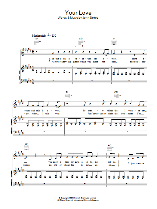 Download or print The Outfield Your Love sheet music, chords and digital score arranged for Guitar Tab. This Pop score includes 7 page(s).