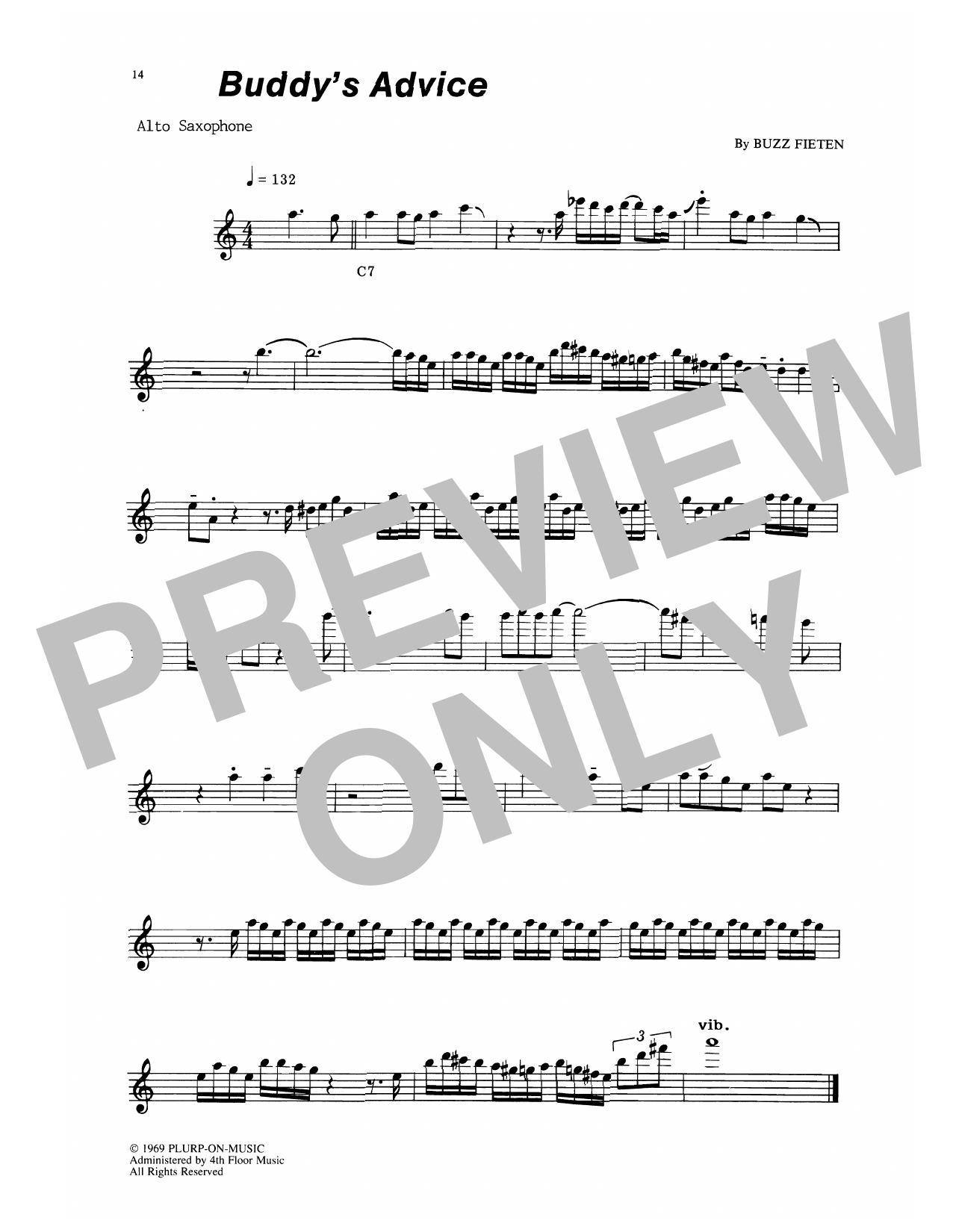 Download or print The Paul Butterfield Blues Band Buddy's Advice sheet music, chords and digital score arranged for Alto Sax Transcription. This Jazz score includes 1 page(s).