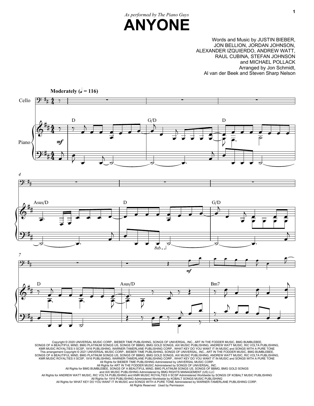 Download or print The Piano Guys Anyone (with Optional Cello) sheet music, chords and digital score arranged for Piano Solo. This Pop score includes 8 page(s).