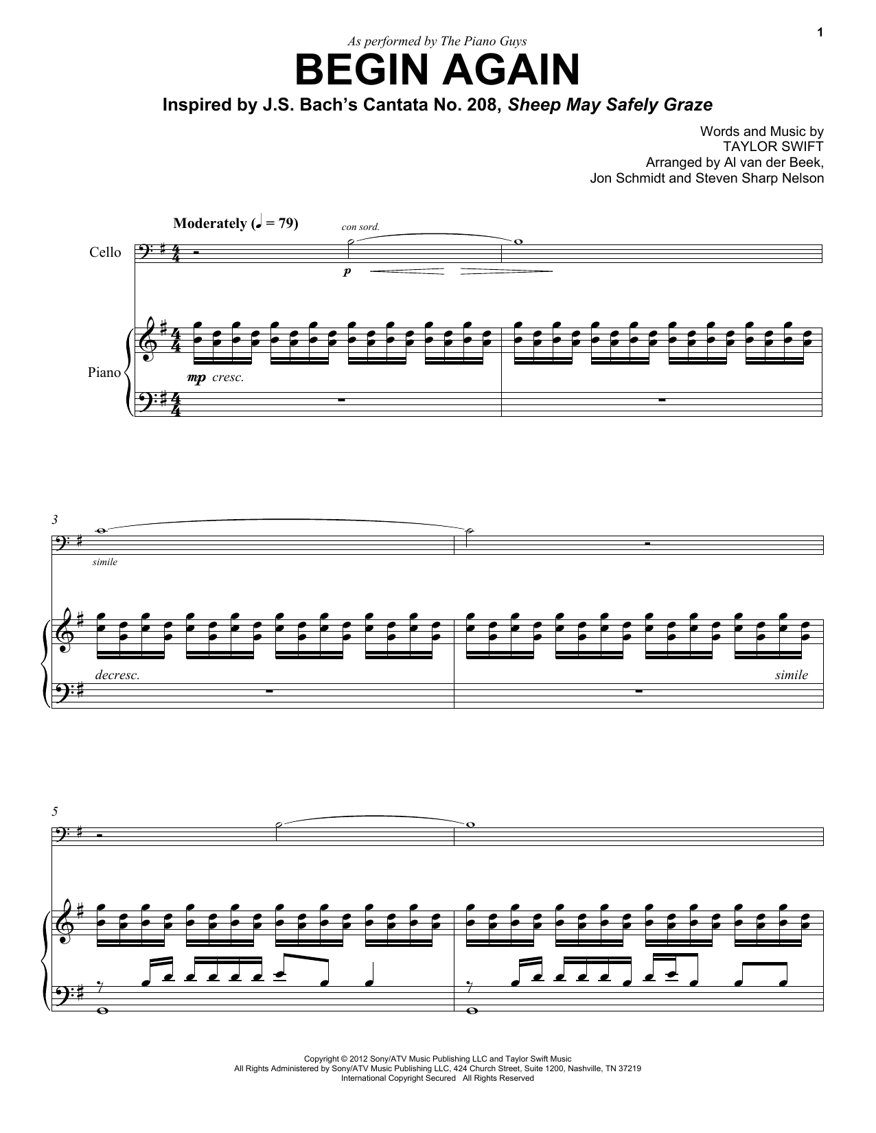 Download or print The Piano Guys Begin Again sheet music, chords and digital score arranged for Cello and Piano. This Classical score includes 10 page(s).