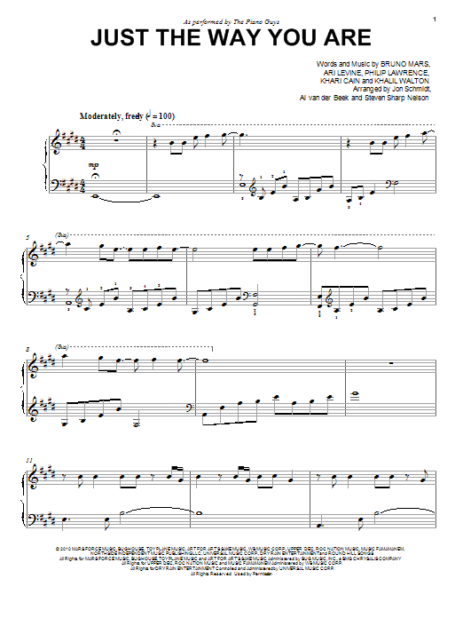 Download or print The Piano Guys Just The Way You Are sheet music, chords and digital score arranged for Piano Solo. This Classical score includes 6 page(s).