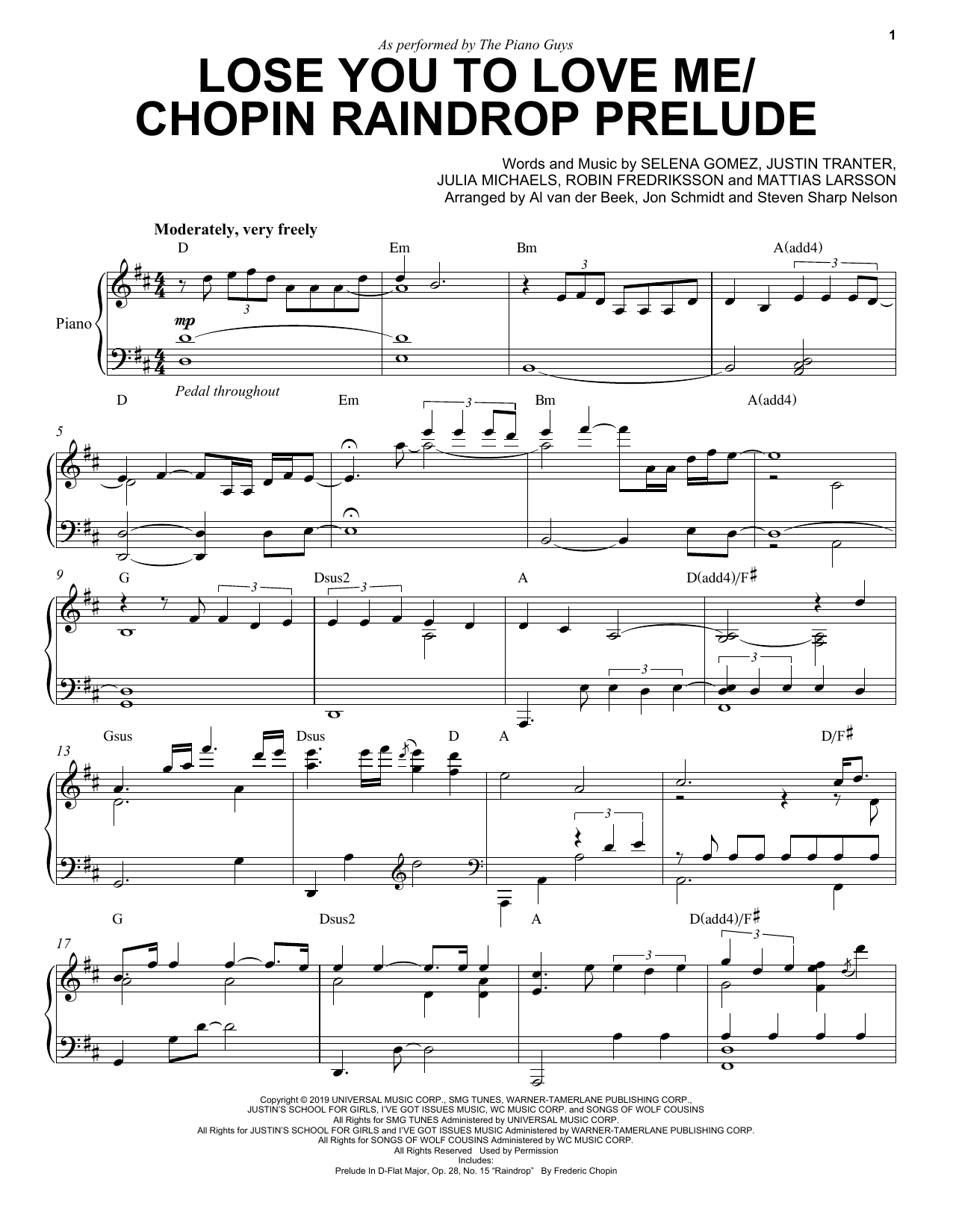 Download or print The Piano Guys Lose You To Love Me/Chopin Raindrop Prelude sheet music, chords and digital score arranged for Piano Solo. This Pop score includes 4 page(s).