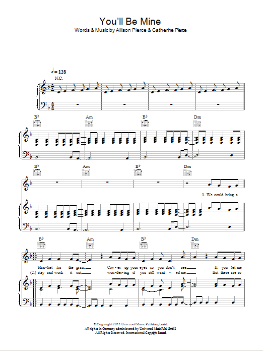 Download or print The Pierces You'll Be Mine sheet music, chords and digital score arranged for Piano, Vocal & Guitar Chords. This Alternative score includes 4 page(s).