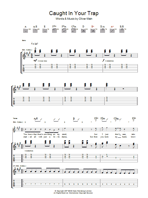 Download or print The Pigeon Detectives Caught In Your Trap sheet music, chords and digital score arranged for Guitar Tab. This Rock score includes 5 page(s).