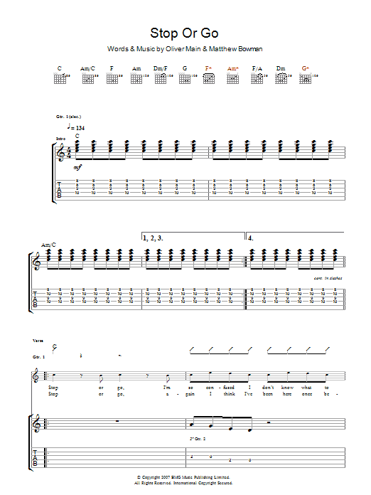 Download or print The Pigeon Detectives Stop Or Go sheet music, chords and digital score arranged for Guitar Tab. This Rock score includes 6 page(s).
