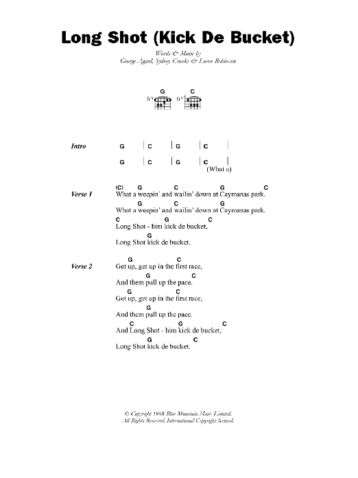 Download or print The Pioneers Long Shot (Kick De Bucket) sheet music, chords and digital score arranged for Guitar Chords/Lyrics. This Reggae score includes 2 page(s).