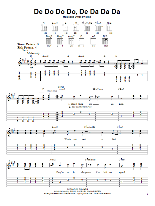 Download or print The Police De Do Do Do, De Da Da Da sheet music, chords and digital score arranged for Guitar Tab. This Pop score includes 4 page(s).